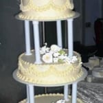 Die Hochzeitstorte ist oft mit einem Tortenaufsatz gekrönt. Die bekanntesten Tortenformen sind die selbsttragende Form, die Etagere, die Kasten- oder die Wendelform.